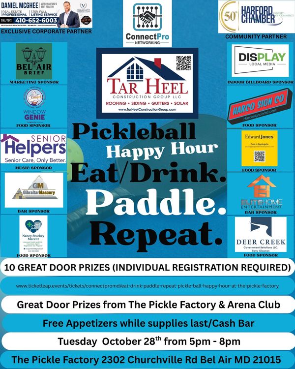 This was a great event. Some said the best yet!!! 📷 This high-energy evening was all about mixing business with pleasure—pickleball style! Thank you for joining us on October 28 at the Pickle Factory in Bel Air, Maryland, where the courts were buzzing with live pickleball matches, professional demonstrations, and the kind of networking that only happens when you’re having a blast.