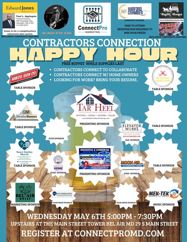 Contractors Connection Happy Hour – May 6 at Main Street Tower (5:00–7:30 PM) Sponsor Opportunities Available!!!!!